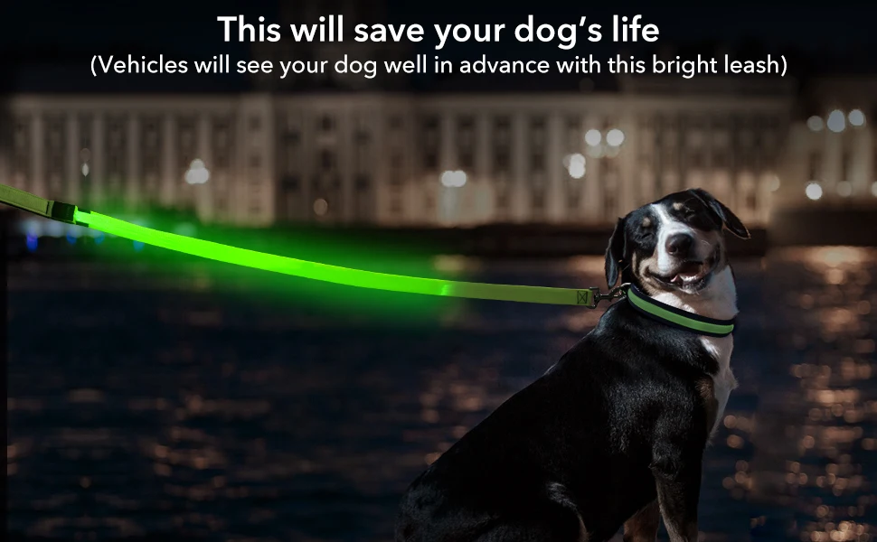 Coleira luminosa com LED e carregamento USB para cães. Você e seu cão ficarão ainda mais seguros e visíveis.